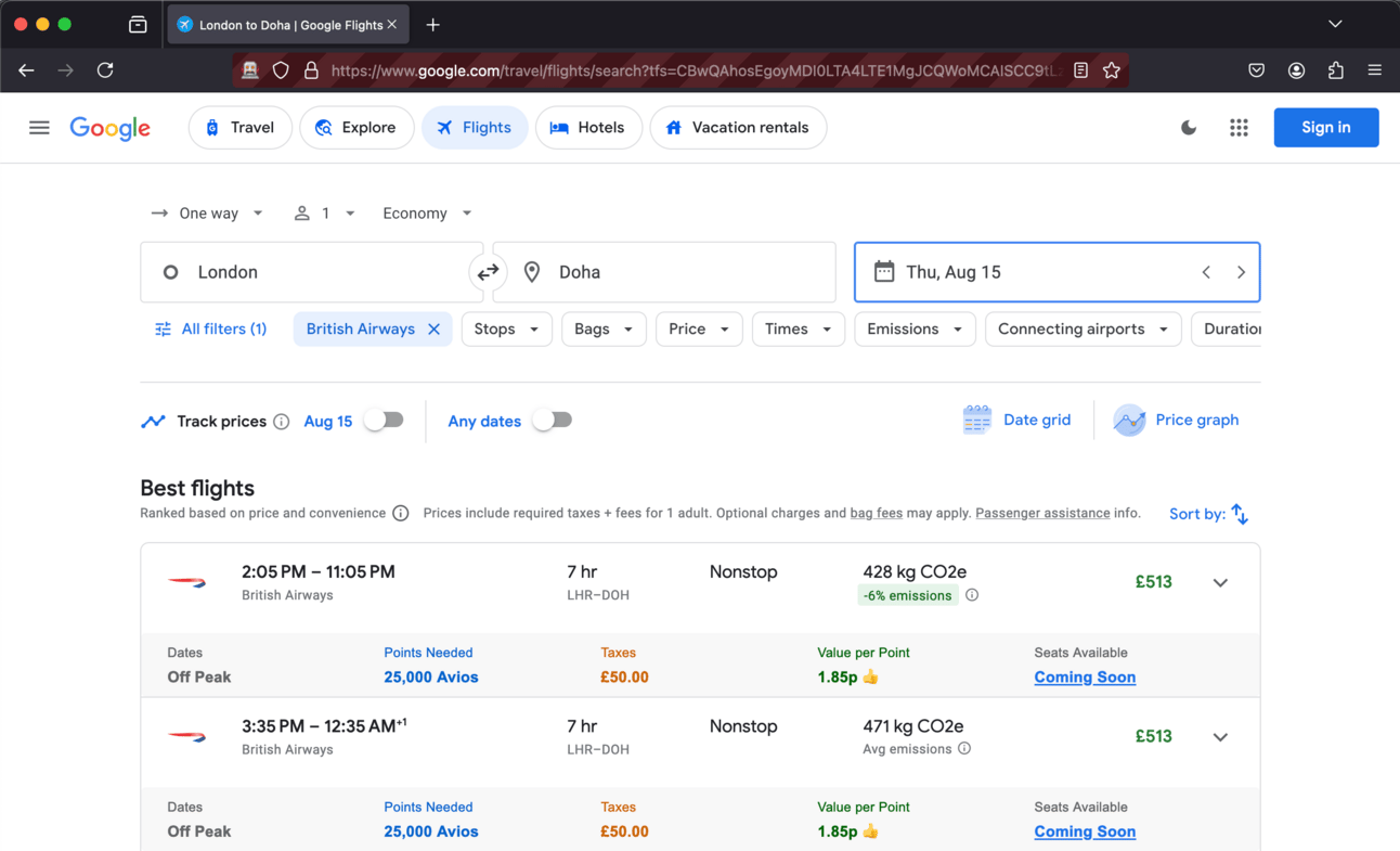 If you haven’t heard about Smart Redemptions, the Chrome Extension I built will show you the cost of an Avios redemption in Google Flights and whether the redemptions are good value or not.