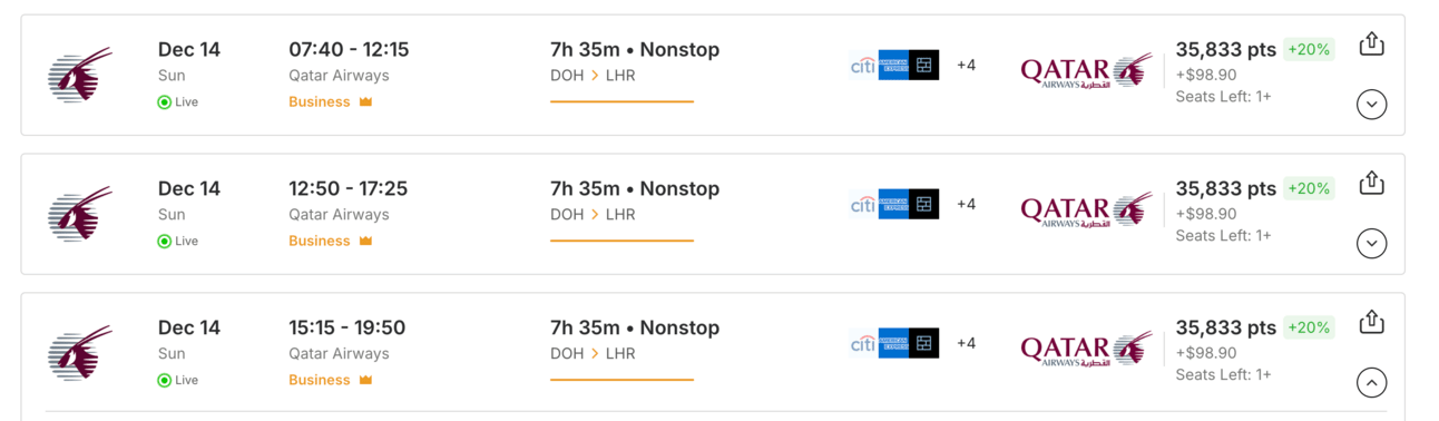 I've found the tool particularly useful for searching Doha-London routes, opening up numerous possibilities for UK travelers (ignore the Avios amount though, the transfer bonus is US-only sadly).